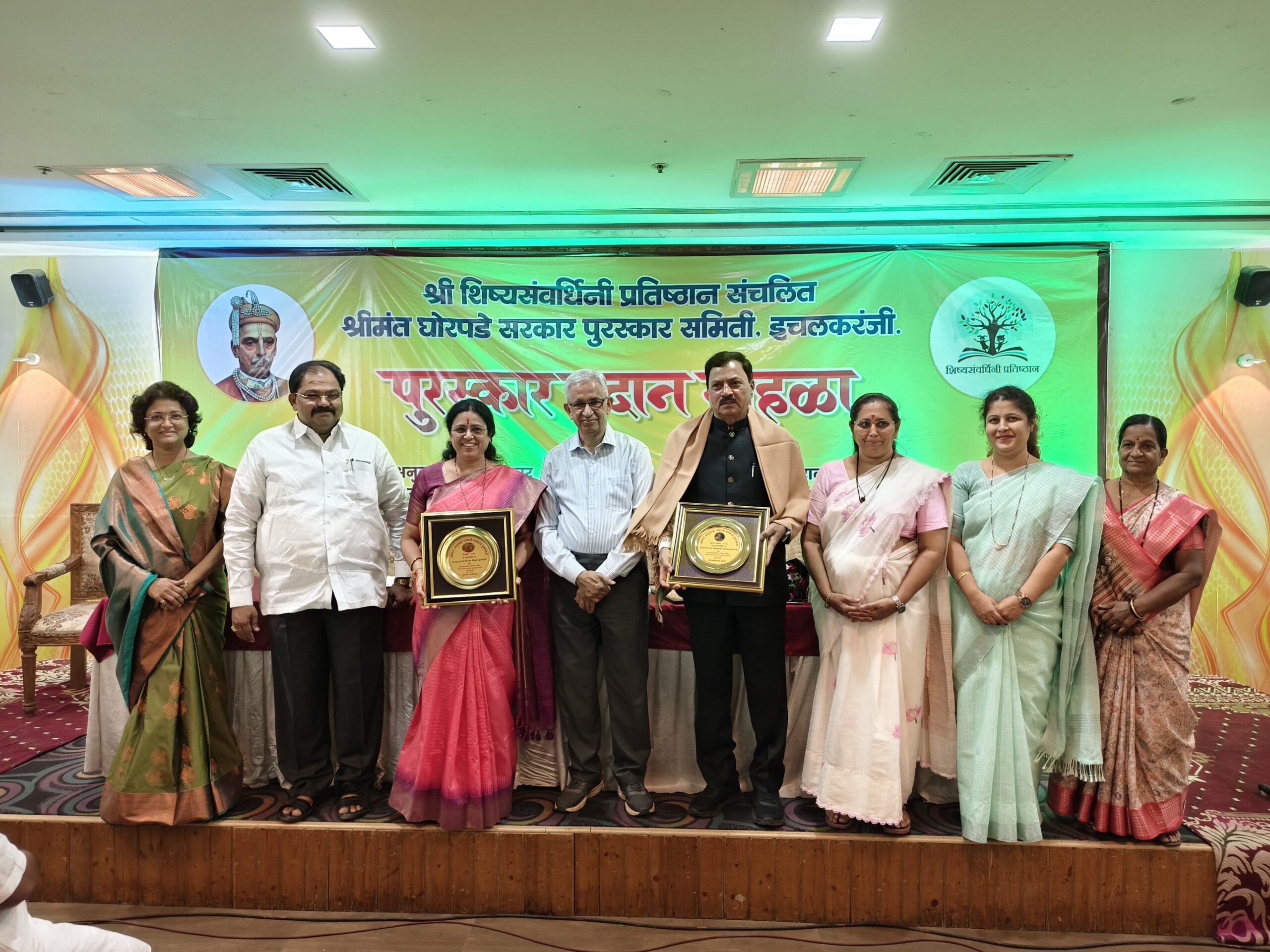 येथील शिष्य संवर्धिनी प्रतिष्ठानच्यावतीने प्रथमच सुरू करण्यात आलेल्या श्रीमंत अनुबाई घोरपडे सरकार व श्रीमंत नारायणराव घोरपडे सरकार पुरस्कारांचे वितरण सोहळा फोर्च्युन प्लाझा येथील दरबार हॉलमध्ये दिमाखात पार पडला. या सोहळ्यात राज्यसभा खासदार मेधा कुलकर्णी व विवेक देशपांडे यांना मान्यवरांच्या हस्ते पुरस्कार प्रदान करण्यात आले. अध्यक्षस्थानी निवृत पोलिस महासंचालक प्रवीण दीक्षित होते.