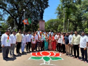 तसेच ‘भारतीय जनता युवा मोर्चाच्या वतीने स्थापना दिना निमित्त मोटर सायकल रॅली शहरातील प्रमुख मार्गावरून काढून महापुरुषांच्या पुतळ्यांना पुष्पहार घालून अभिवादन करण्यता आले.शहरातील प्रमुख चौका मध्ये आकर्षक रांगोळी काढून सजावट करण्यात आली.