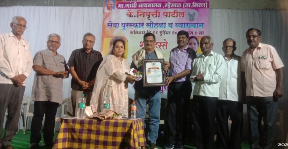 प्रसाद कुलकर्णी ” निवृत्ती पाटील समाजकार्य व साहित्यसेवा पुरस्काराने सन्मानित “